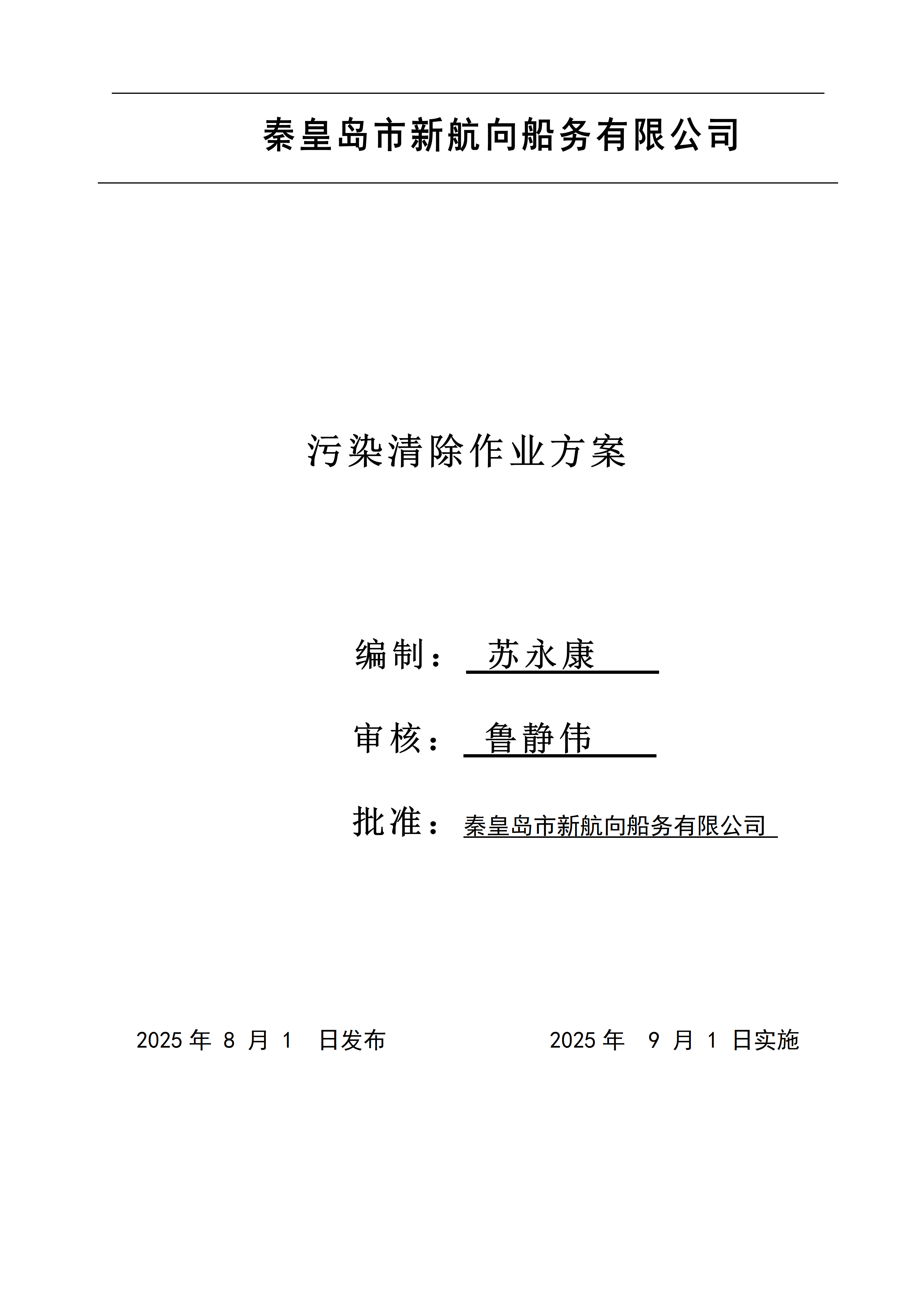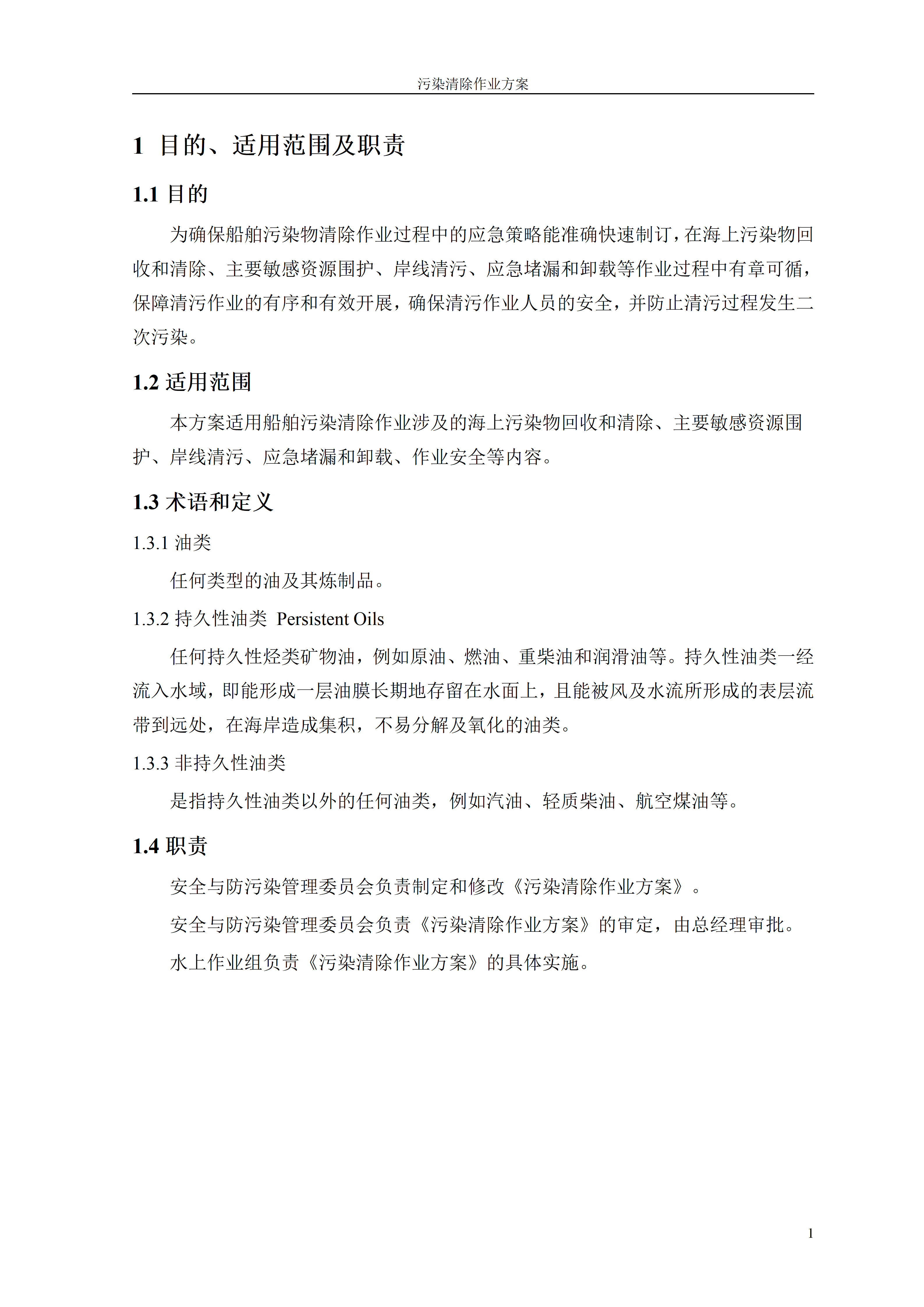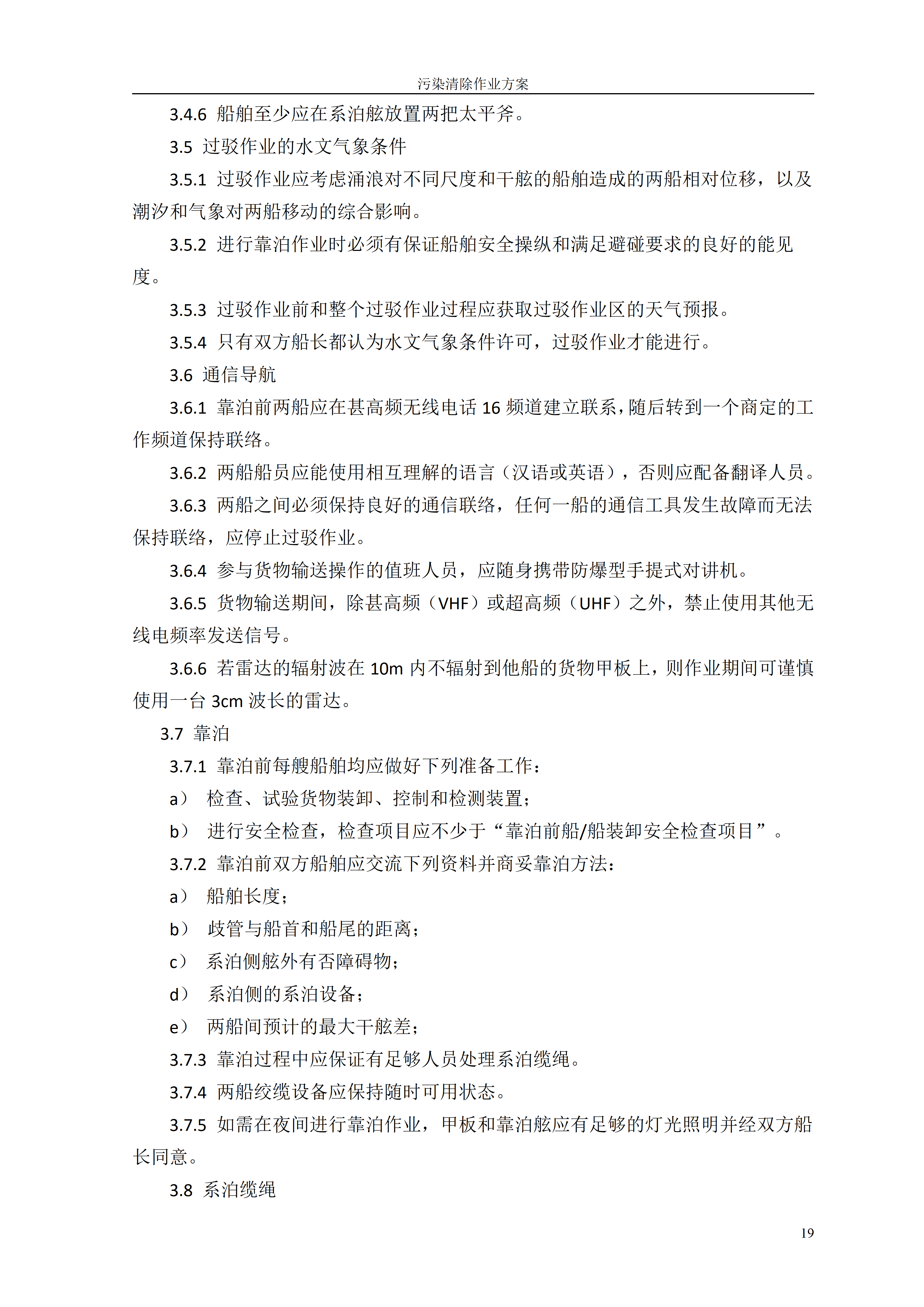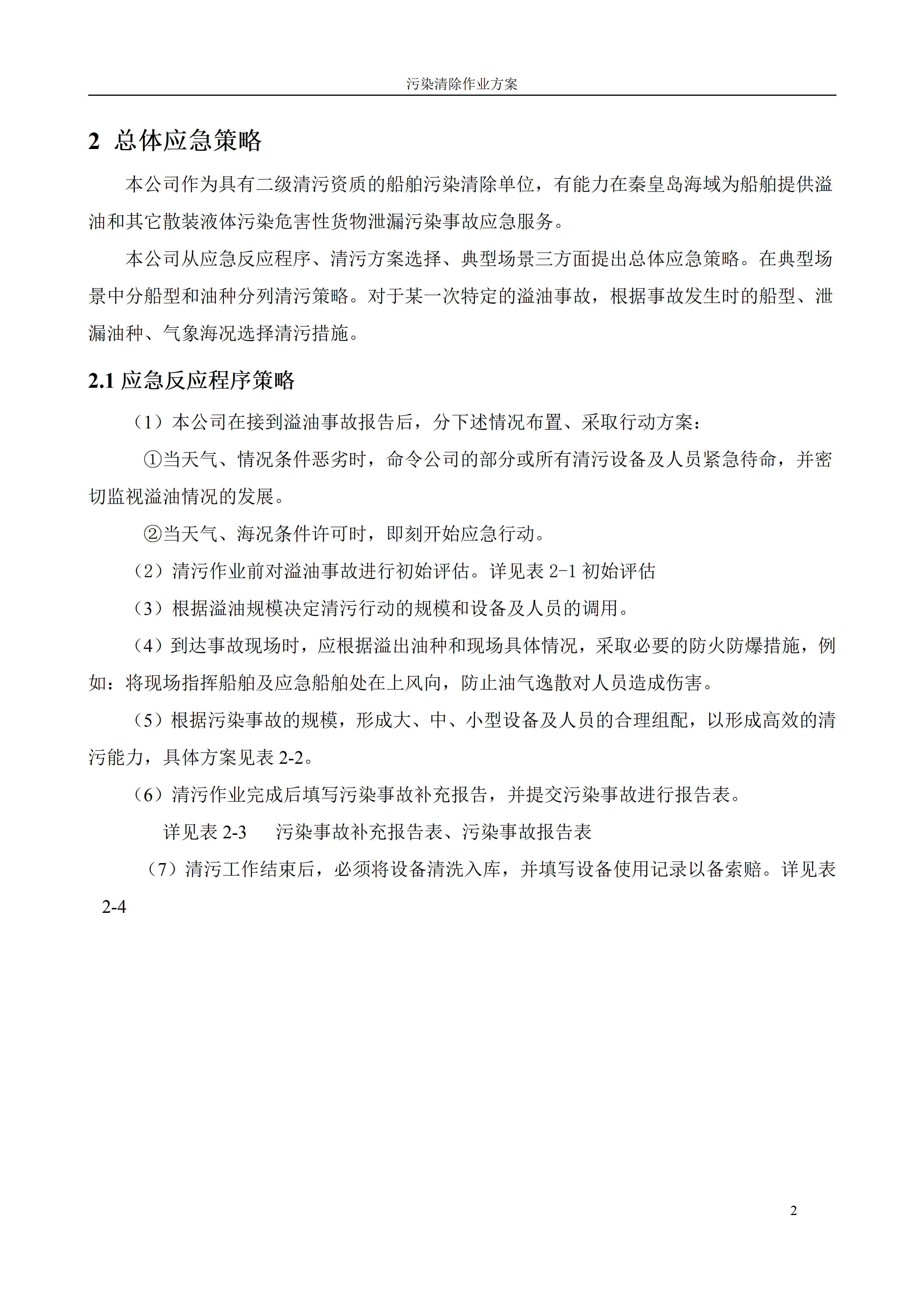 公司根据《中华人民共和国船舶污染海洋环境应急防备和应急处置管理规定》制定了科学规范的《海上污染清除作业方案》。